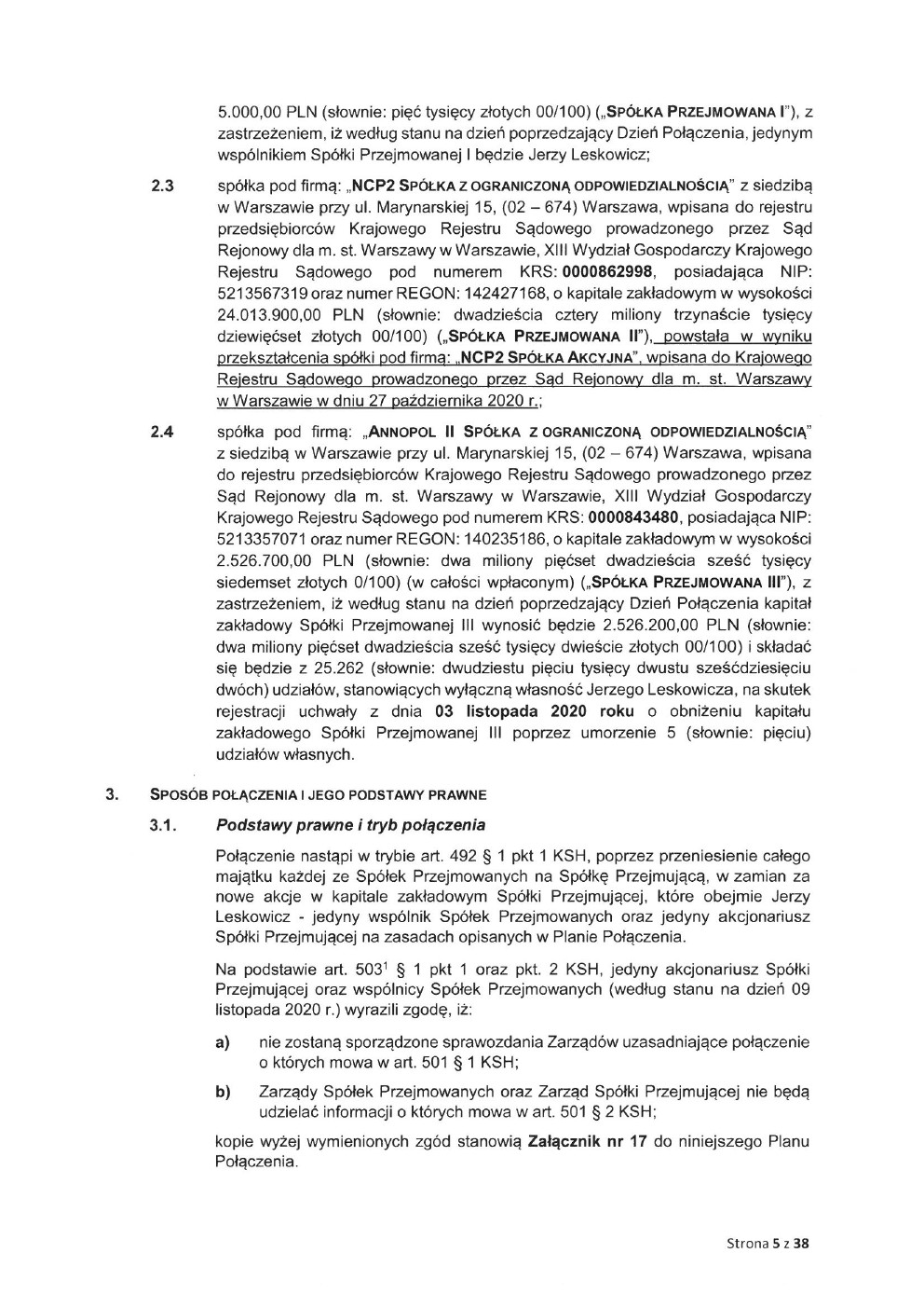Plan połączenia spółek