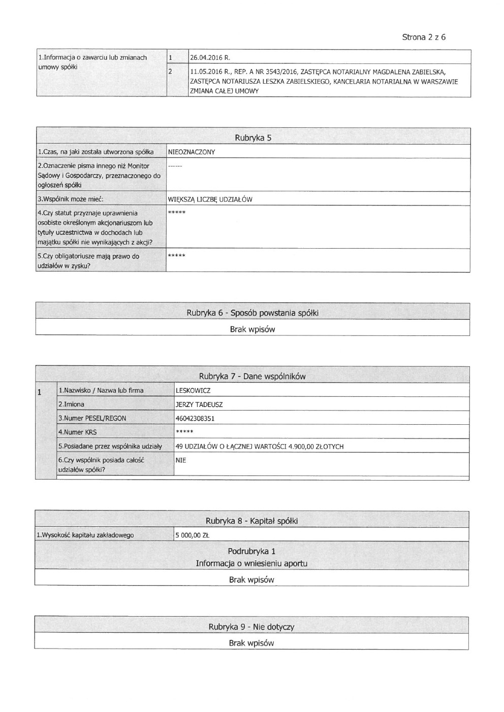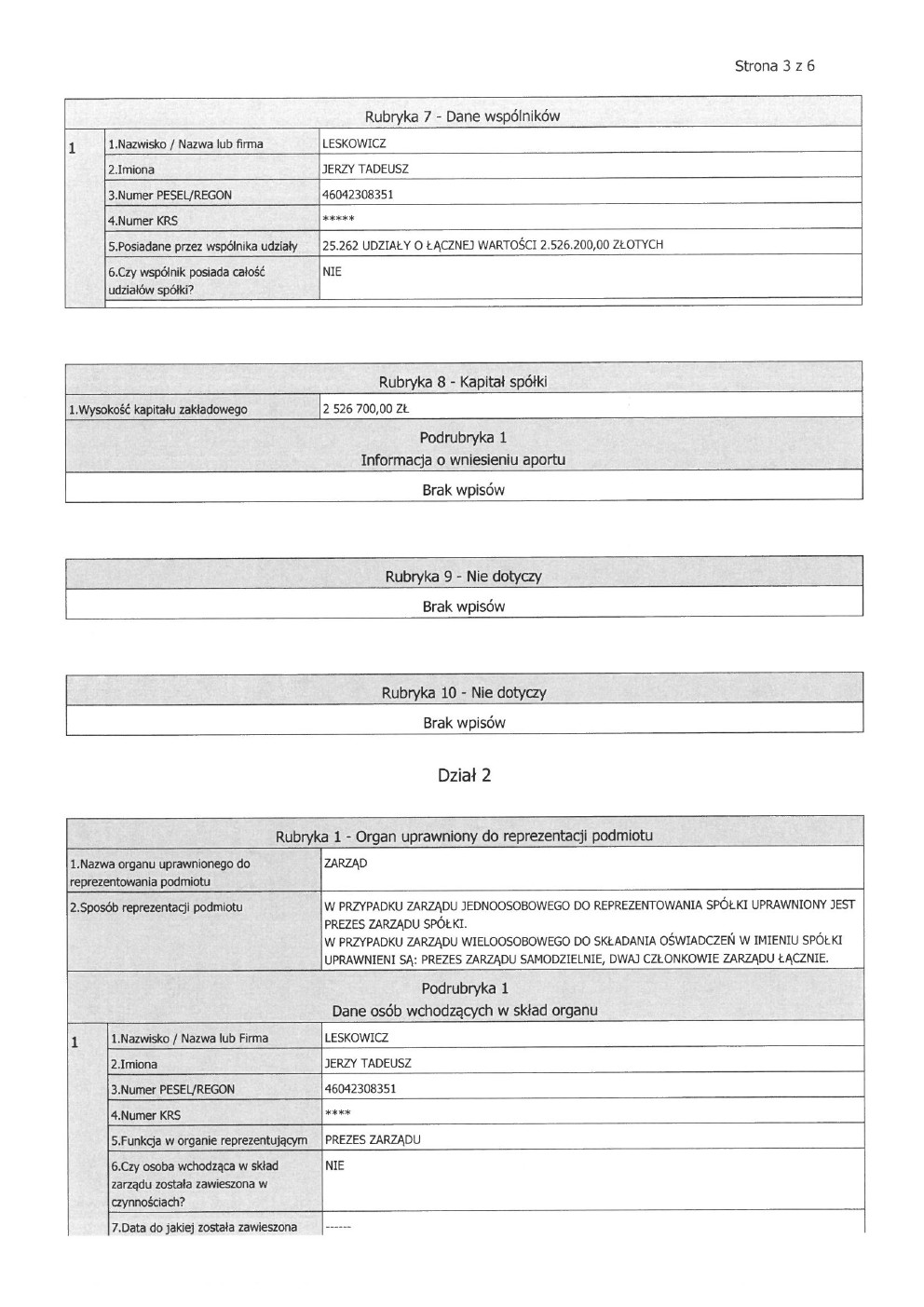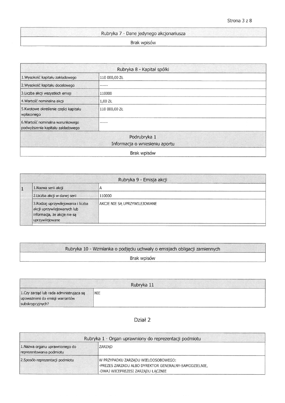 Dane spółki