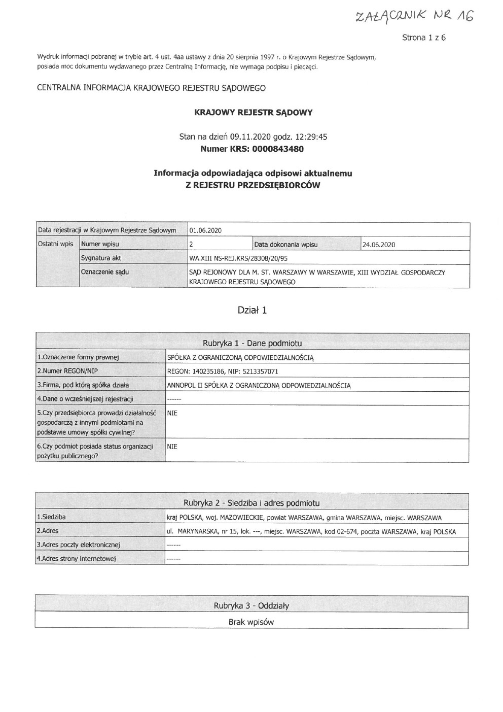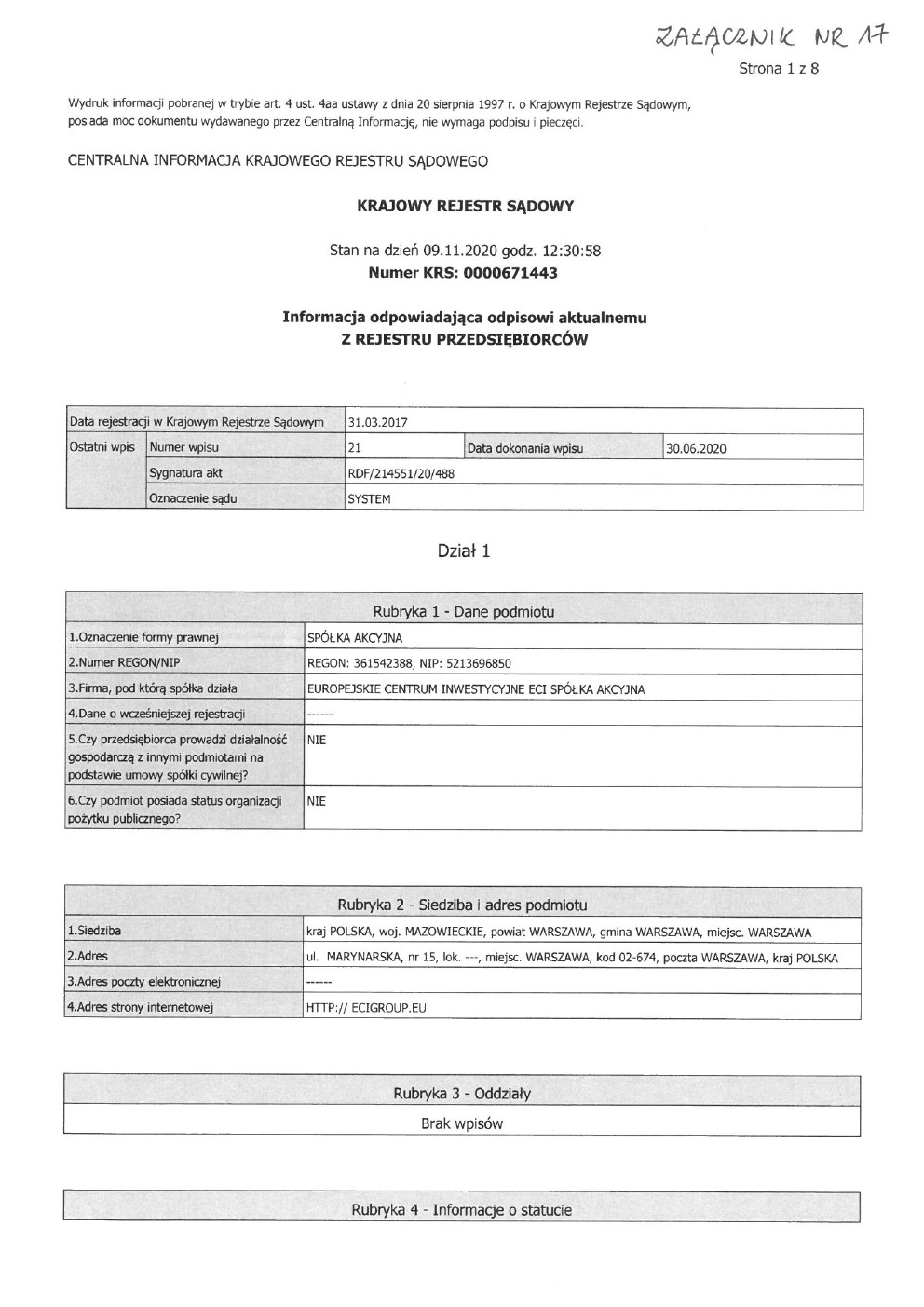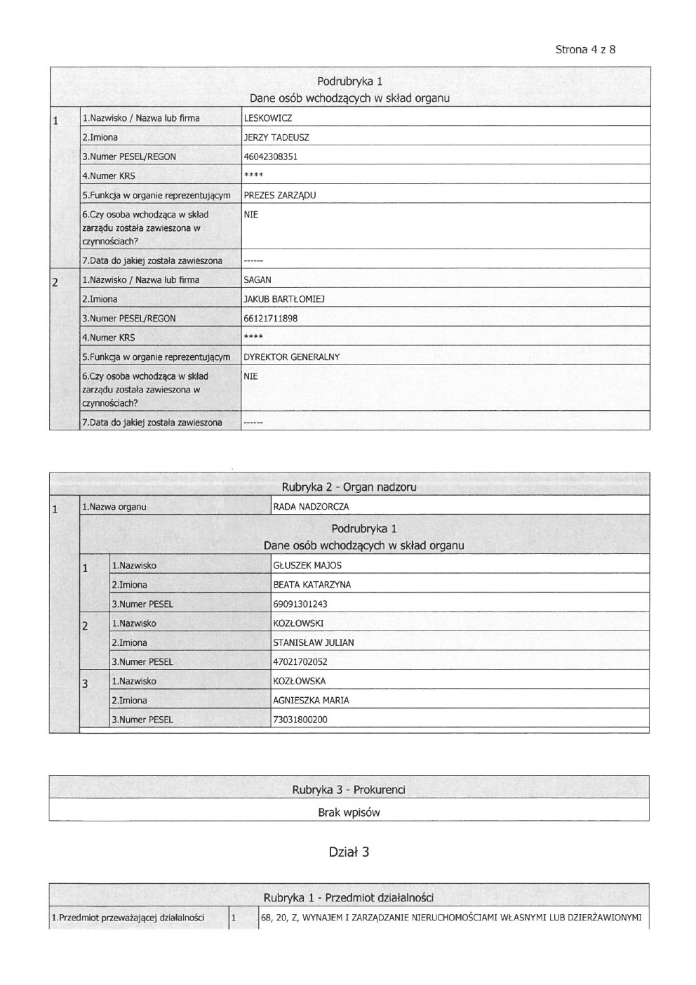 Dane spółki